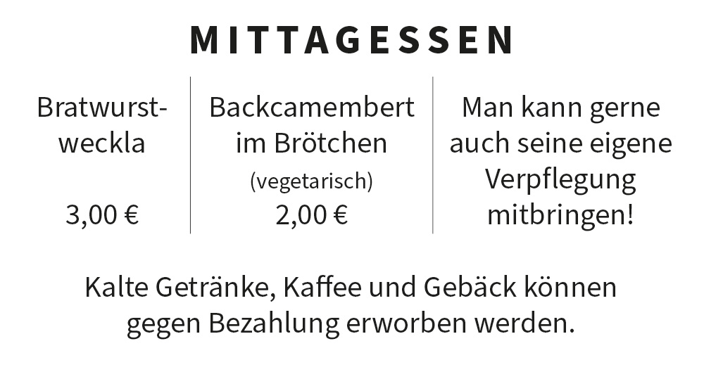 Kalte Getränke, Kaffee und Gebäck können gegen Bezahlung erworben werden.